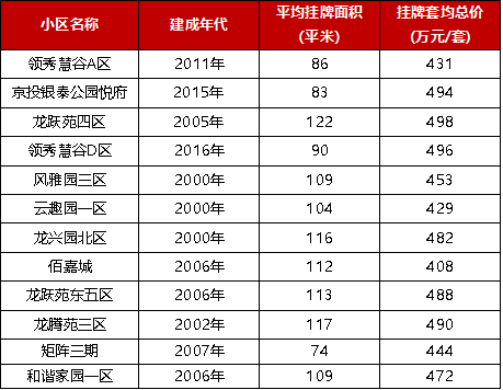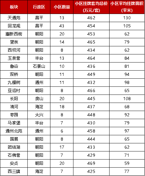 表:北京总价400-500万二手住宅板块热销top20