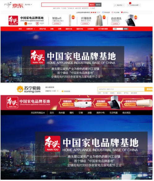 数据是较好的传声筒,创新是较核心的竞争力。南头镇于2016年启动“南头制造”区域品牌电商发展模式,在京东商城和苏宁易购成功搭建“南头制造”京东馆和苏宁馆,目前“南头制造”现已经被各大电商平台列为中山市第三大产业带(南头家电、古镇灯饰、沙溪服装),同时成为全国不多已经在京东商城和苏宁易购开设的家电场馆,“南头制造”品牌效益显著。
