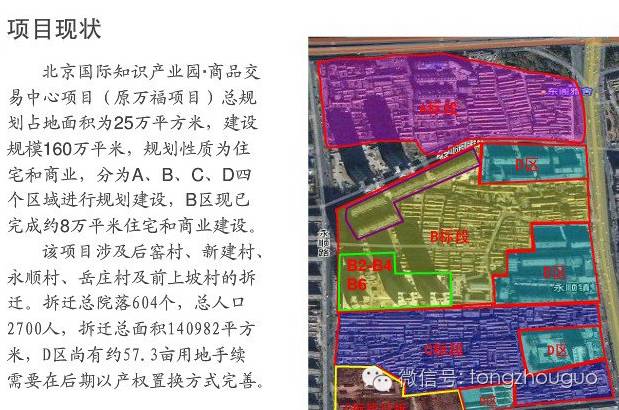 通州君查询资料发现,万福家园项目原来就是传说中的北京国际知识产业园·商品交易中心项目,位于新华北路的西侧,涉及后窑村、新建村、岳庄村及前上坡村的拆迁。总人口2700人,拆迁面积14万平米。