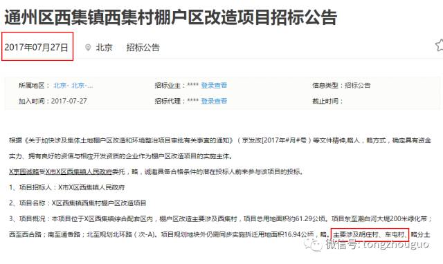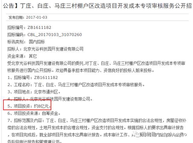 除了上述5村,通州较富的村庄——起码从名称上来说,富豪村棚改也开始招投标了!