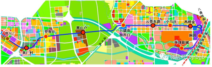 焦化厂站→黄厂村站→豆各庄站→黑庄户站→万盛南街西口站→云景东路站→小马庄站→高楼金站→施园站→环球主题公园站