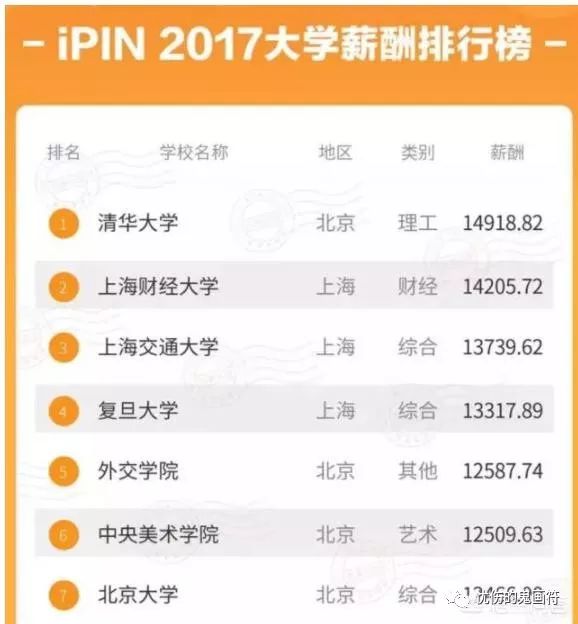 以下是iPIN公司统计的2017年大学生毕业五年工资情况。