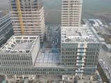 济宁京杭大数据项目建设现场,随着人员陆续返岗,物资运输逐渐顺畅,正争分夺秒,千方百计追赶进度。目前,建筑外立面正在紧张有序施工,恢宏蓬勃的建筑轮廓凸显,未来,还将通过多维度的户外景观设计,增设共享绿轴、屋顶花园,为塔楼使用者提供享受户外生态环境的绿