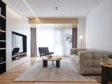 在这套270多平的大平层户型中,整体空间采取现代风格的设计,在实用的收纳空间设计基础,保留宽敞的空间格局,为主人一家带来了一种从容舒适的居住与生活体验。 客厅 ▲客厅空间整体灰色调的地面基础,天花简洁的吊顶加入无主灯设计,带来一个现代优雅的大气空间感。 ▲电视墙以灰色定制电视柜的设计,壁挂安装电视机