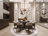 一进礼序取意宋代二坡顶形制,透光奢石立面与沉木景墙横向延展,苍劲造型松与古朴肌理展开“石木对话”,门头处采用手工锻造的铜制匾额,以宋体书法镌刻项目案名,彰显东方礼序的庄重感。四进下沉式会所以高山流水为幕,层叠…