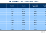 二手房方面,一线城市二手住宅价格环比上涨0.19%,涨幅较上月收窄0.08个百分点;二线城市环比下跌0.18%,三四线代表城市环比下跌0.22%,环比跌幅均较上月有所扩大。2023年4月,二手住宅价格环比下跌…