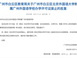 11月2日,白云区教育局在官网上发布《广州市白云区教育局关于广州市白云区北京外国语大学附属广州外国语学校办学许可证废止的批复》,称自2022年1月1日起,该校的办学许可证已到期,且无实际招生、办学行为,根据《…