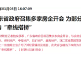 来了!楼市新年又来重磅消息! 1月8日,据财联社获悉,广东省政府日前召集多家房企开会,与会房企包括奥园集团、富力地产、雅居乐、保利地产、中海地产、五矿地产、越秀地产、珠江实业集团等国企和民企。 据知情人士透露,会上一些出险企业介绍了其经营情况及项目,此次会议相当于政府为几家国企央企收并购出险房企项目
