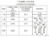 12月1日起,广州较低工资调整为每月2300元