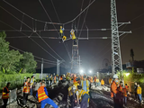 8月19日凌晨 广州白云站施工现场灯火通明 300余名施工人员 正为项目其中的关键性一环 紧张作业 施工现场 当晚,工作人员有序完成线路拨接及抬道、小机捣固、安装绝缘、抽换轨枕、接触网调试、通信、电务设备调试等所有施工项目。 ▲ 施工现场 经过3小时的紧张施工,排名前列次拨接施工顺利完成。成功将大朗至棠