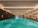 翩然的喷泉会告诉你,绿城·溪径恒庐的大门,并不是按惯常做法做成横向铺展,而是做成了一座更有纵深感的庭院:喷泉的背后,是对称的回廊;在回廊怀抱中的,是宁静的镜面水池;临着镜面水池的,又是三两组回廊下的座位。④尽…