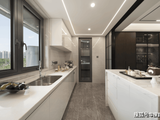 内部装标配置更让你眼前一亮:餐客厅地面和电视背景墙为大理石交付,更有甚者,室内总共用到5款石材,墙面用尼斯木饰面取代以往的墙纸;厨房空调+博世六件套(含双台冰箱),东芝的中央空调,唯宝台盆、汉斯格雅五金、松下…