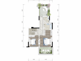 而该项目的下叠地下室层高总计约10m,-1F、-2F的单层层高均超过4m,首层层高达到3.6m,这样一来,既消除了空间尺度上的局促感,还能让隐贵阶层的私域空间更开阔敞亮,完美诠释“院落奢居”的向往生活。约1…