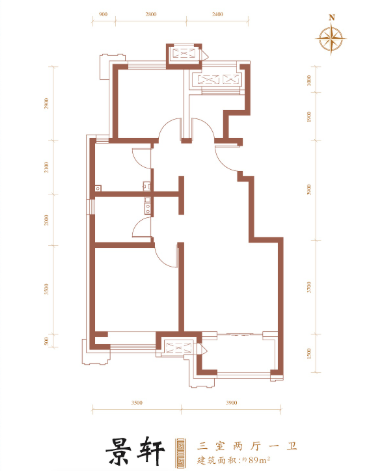 这个户型89平米紧凑型小三居,南北通透,且为把边户型,三面有采光,通风效果也好,外主卧朝南,飘窗;卫生间干湿分离,洗手盆在外面。北侧卧室旁边还有个房间,不到7平米,可以做一个小书房,也可以打通与次卧间的墙壁,作为套房使用。