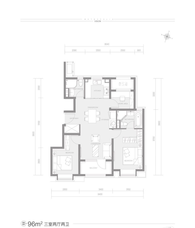 96平三居解析:南向三面宽,主卧套房设计,到独立卫生间,且为明卫设计,避免潮湿;厨房、餐厅、客厅一体化设计,整体的空间感比较好。次卫干湿分离,同样有窗户。整体居住起来还是比较舒服的。