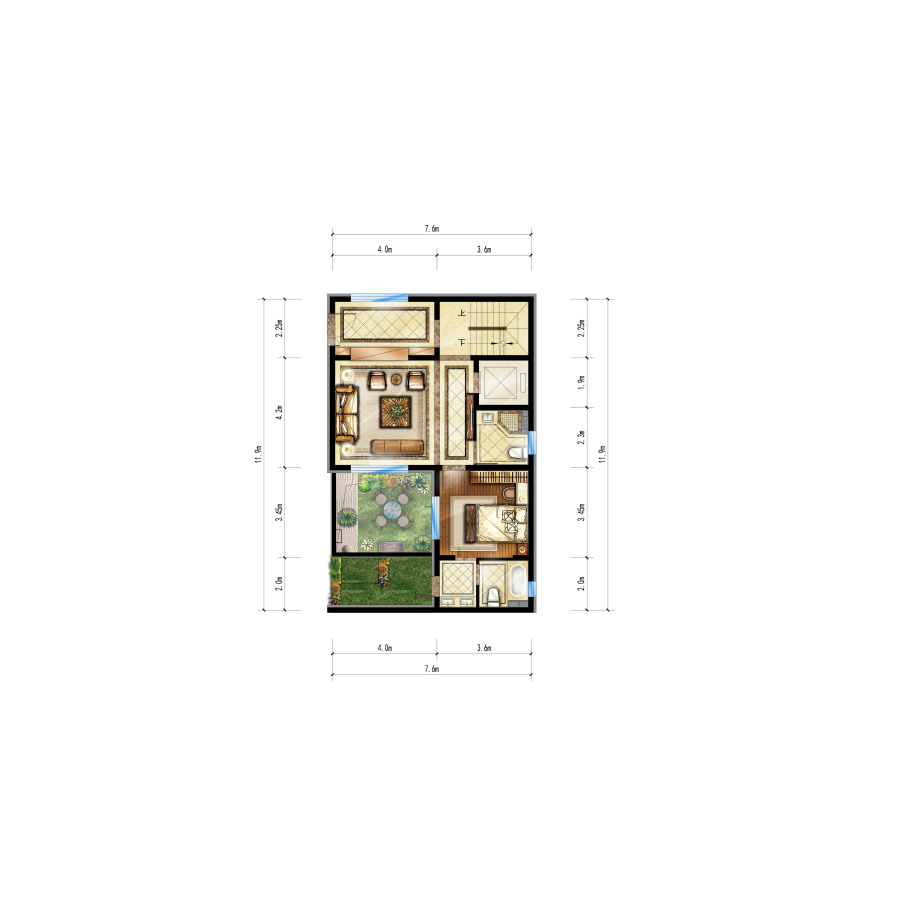中式合院设计,户型方正 采光良好 适合多人口结构的家庭 私人隐私性好