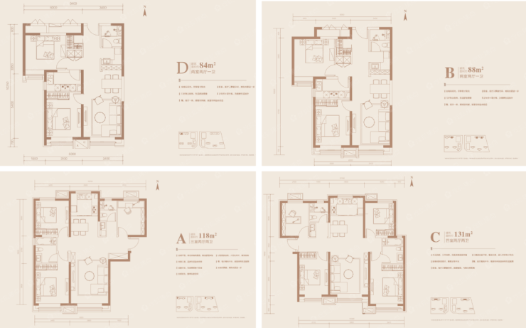项目3居54套,4居72套,2居506套,首期开盘去化率达50%,总层高 17-18层,户型由84平米-132平米两居至四居组成,能满足从刚需到改善的所有客群。3居4居目前剩余不多,仅有2套特价房;2居户型种类多数量多,南北通透,得房率74%-78%,有意者咨询可致电400-032-4608转383884。