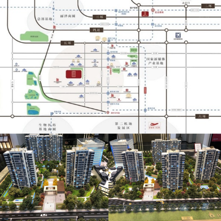 项目位于兴业大街与清源西路交汇处西南角,大兴黄村核心区域,距离地铁4号线清源路站800米。总占地3.9万平米,7栋住宅楼共632户,社区中央被一条下沉商街,分为东西两个全封闭居住社区。