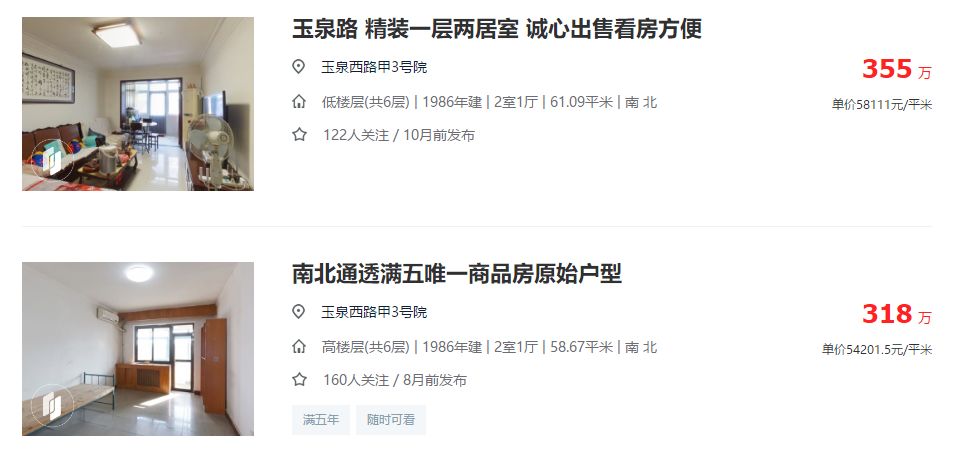 对比周边二手房:距离项目最近的园林小区售价在6.2-6.5万/平之间;建于1986年的玉泉西路甲3号院售价在5.4-5.8万/平之间。