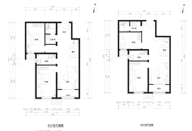 B2、B4户型属于全南两居,主卧朝南,客厅向阳,光线充足。2梯4户,卫生间为暗卫,阳台为封闭型。