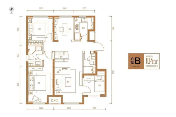 该户型受关注度较高,原因之一在于在100㎡的面积段里做出四居的限竞房项目,金茂悦算是独一份。其他限竞房项目,四居面积段基本都在130㎡以上。而且, 就户型本身来说,金茂悦104㎡户型也非常出彩。三面采光,双卧朝南,还是双卫设计,功能空间十分完备,空间使用率也很高。当然,也不可避免地出现了除主卧外,三个次卧面积都比较小的问题, 这就要看购房者自己的取舍了。