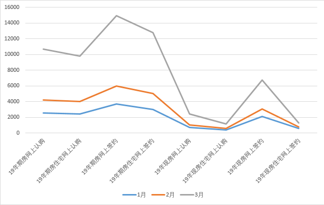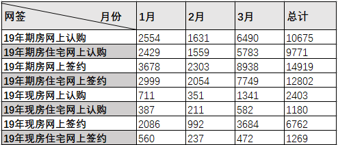 2019年1-3月份新房住宅网上签约量12802套,二手房住宅网上签约量1180套。