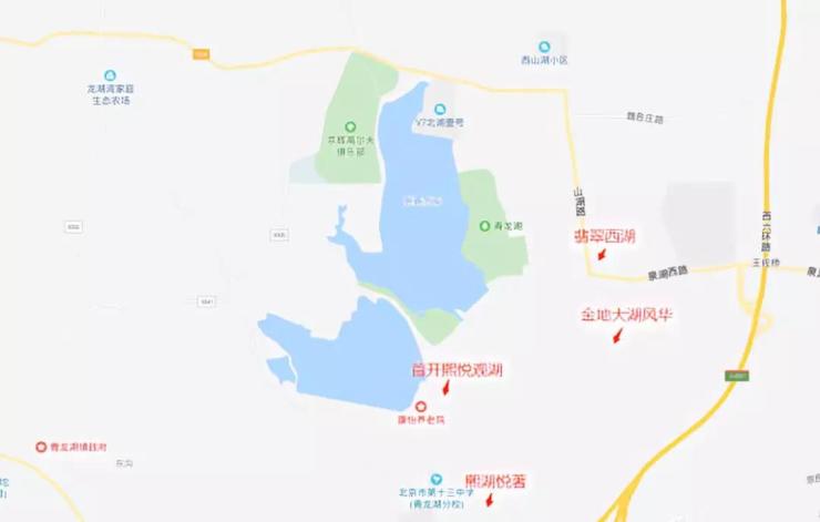 熙湖悦著位于大苑村收费站出口(良坨路桥)左行200米,三项目中距离北京市第十三中学(青龙湖分校)最近。