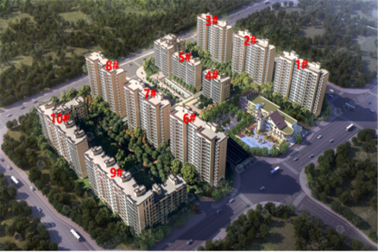 社区共有10楼栋,8-15层小高层产品,中间由一条市政路分为南北两个地块,南地块规划为住宅及一层沿街商业,下沉式商业;北地块规划了住宅,幼儿园及下沉式商业。北地块为1-5号楼,南地块为6到10号楼。整个社区人车分流,社区规划机动车位1280个,车位配比为1:1.1。项目配售房源1130套,其中,二居室177套,建筑面积约79平方米;三居室865套,建筑面积约89-108平方米;四居室88套,建筑面积约119平方米。销售价格为29000元/平方米,全装修交付。两居总价低至229万/套起,首付仅为68万。