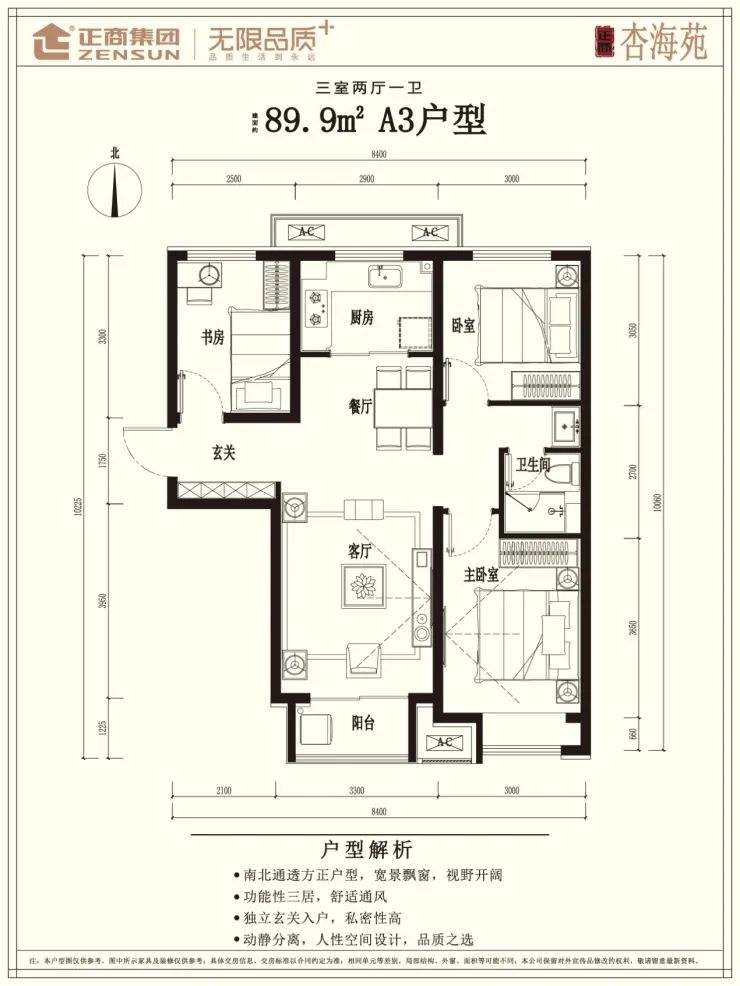 相信大家在自己经济能力范围内,已经确定了购买几居室的房源,然而多个户型,同一户型不同楼栋如何选择,今天给大家分析下。从整体小区布局来看,楼栋分布非常方正,那么优先选择小区中间楼栋,不但安静而且安全,当然小区间的道路影响比较小,比如想买个三居室,以89平户型为例,毕竟89平是有三个户型的,而且房源占比非常大,以小编的经验还是喜欢南北通透的户型,纯南夏天可能比较热, 下面的A3户型就不错。