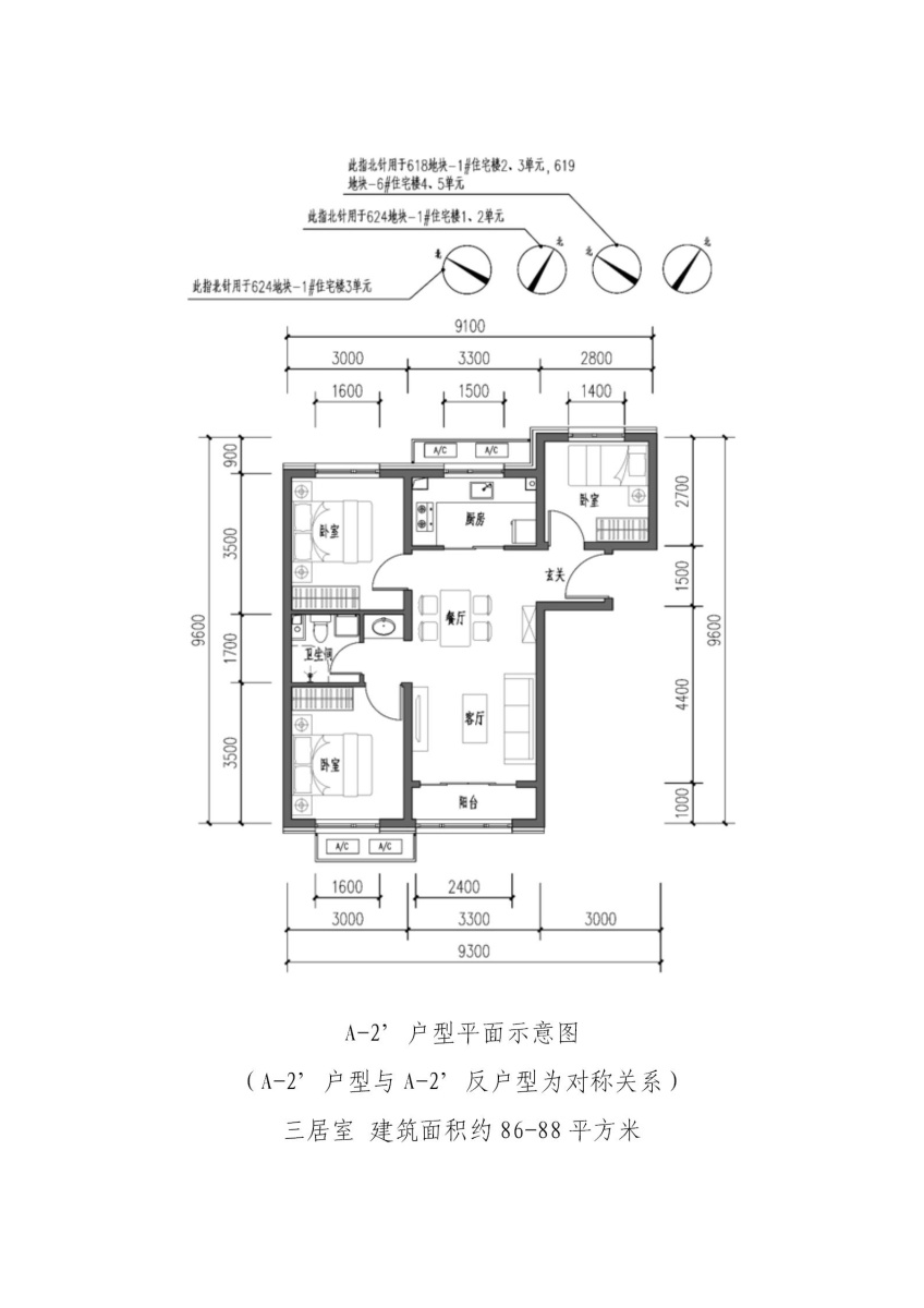 A-2’户型-3室2厅1卫-88.0㎡
