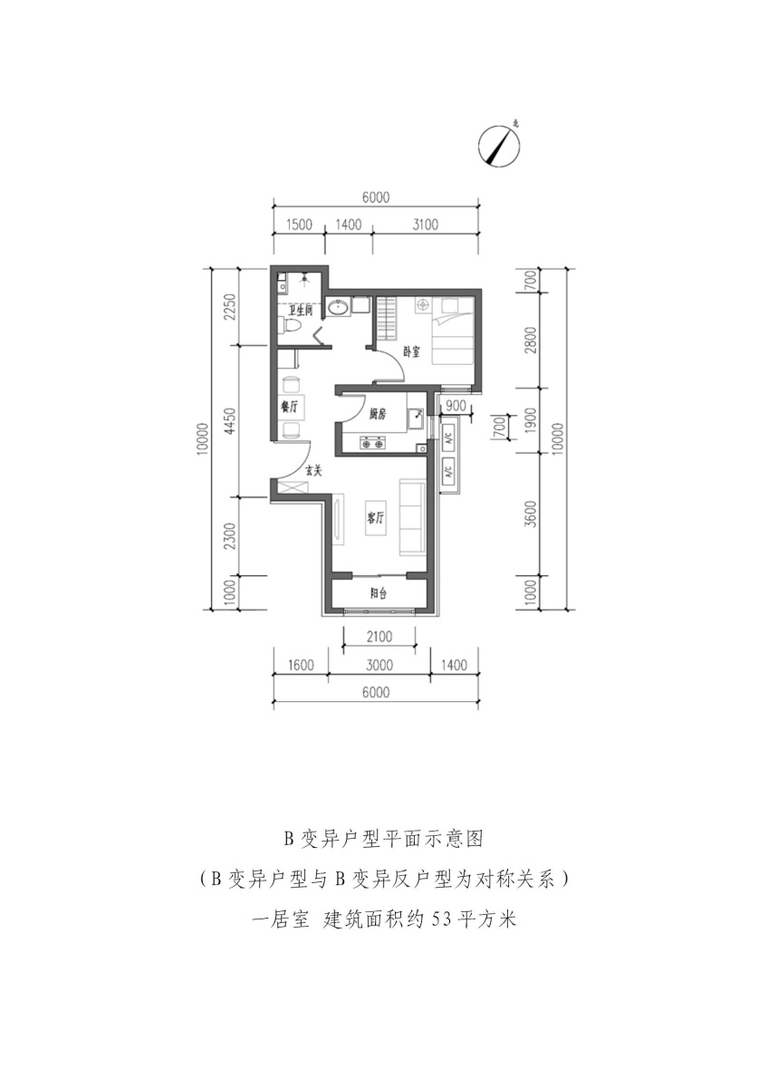 B变异户型-1室1厅1卫-53.0㎡