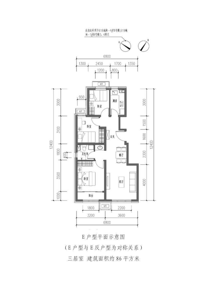 E户型-3室2厅1卫-86.0㎡