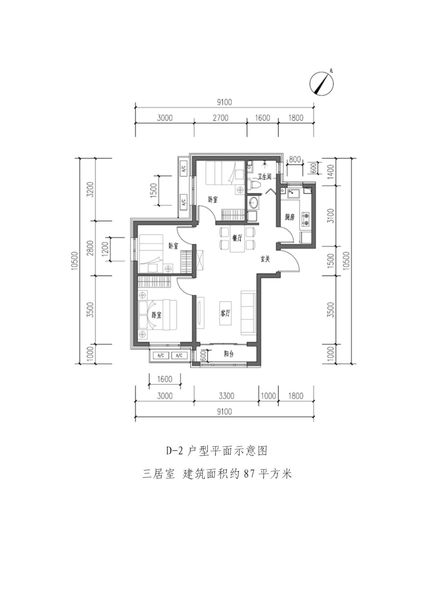 D-2户型-3室2厅1卫-87.0㎡