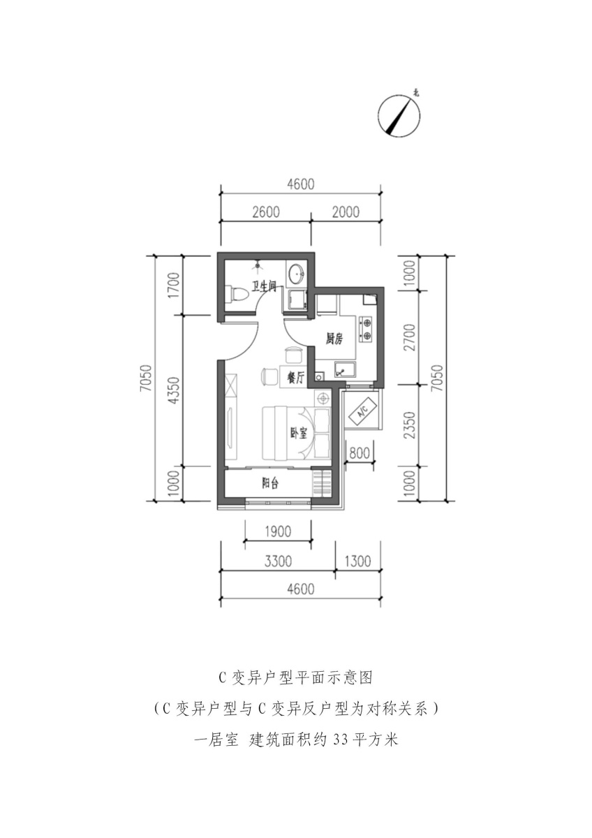 C户型变异-1室1厅1卫-33.0㎡
