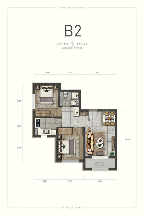 该户型三面朝南,解决三口之间独立空间的问题,总价也不会很高,上车族完全可以考虑。