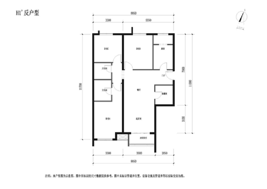 H1-3室1厅2卫-120.0㎡