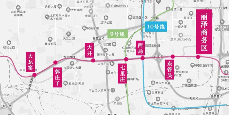 首先来说说地块位置,两宗地块就位于西四环大瓦窑地铁站的北侧,直线距离400多米,未来14号线中段开通后,6站直达丽泽商务区。另外,京港澳高速路就在边上,自驾也十分方便。(L33为国誉万和城,L39为天阅山河)