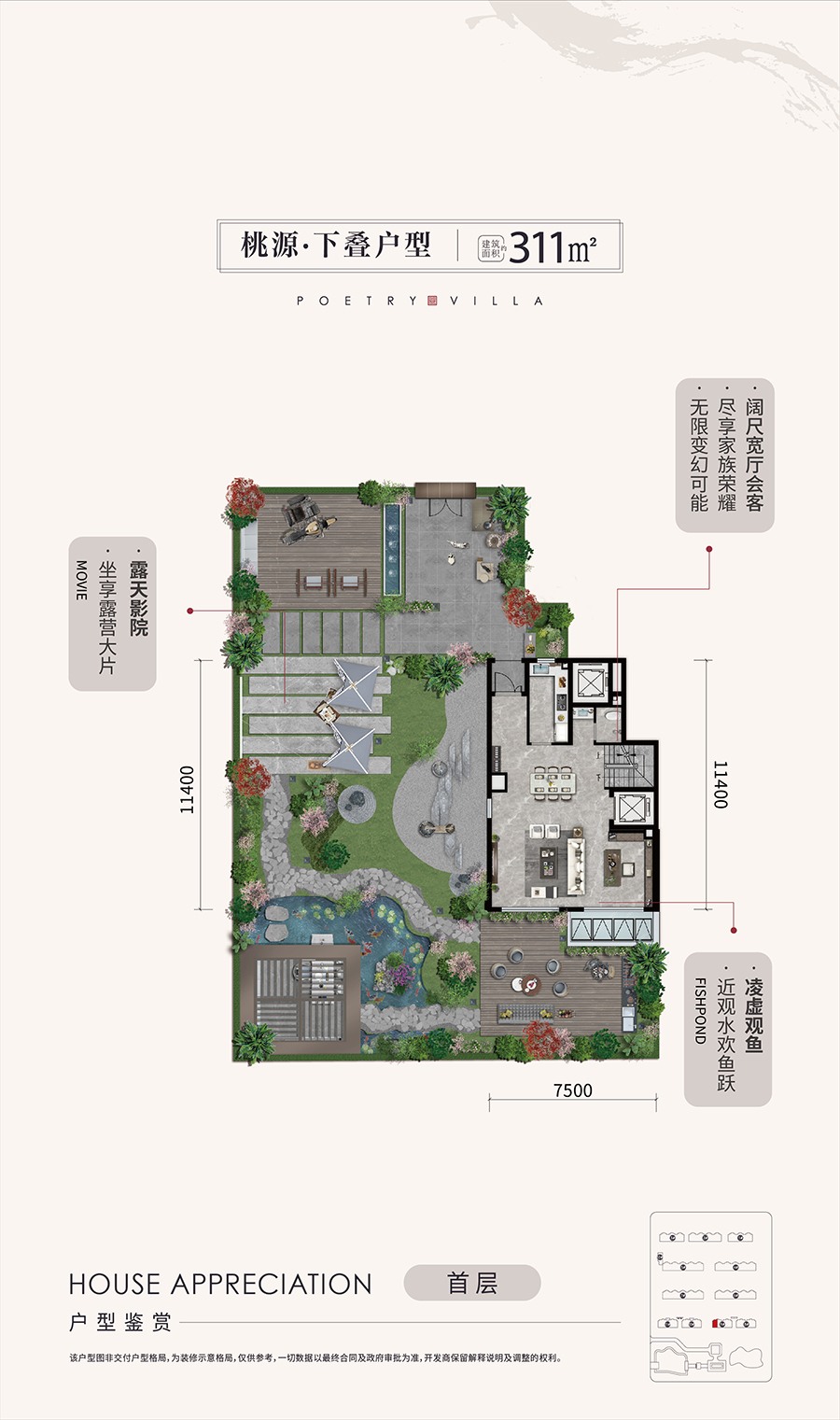 京能·丽墅容积率仅1.05,规划152户叠墅,“一心两轴多院落”布局,形成三进式归家礼仪,围合中央景观轴,打造四季皆景的宜居社区。