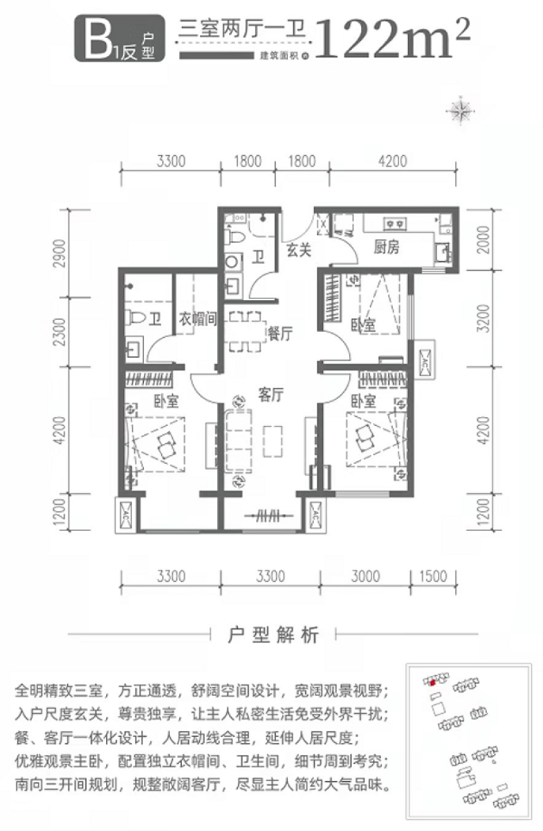 B1反户型-3室2厅2卫-122.0㎡