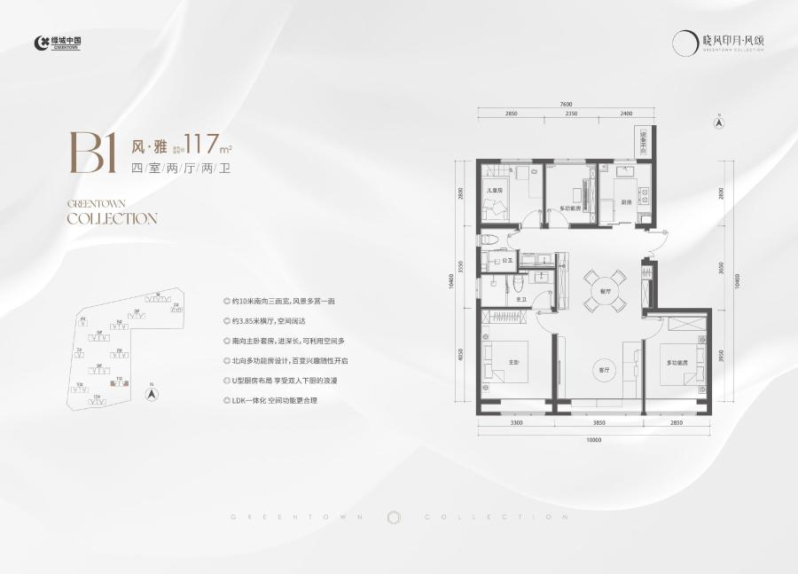 风·雅B1户型-4室2厅2卫-117.0㎡