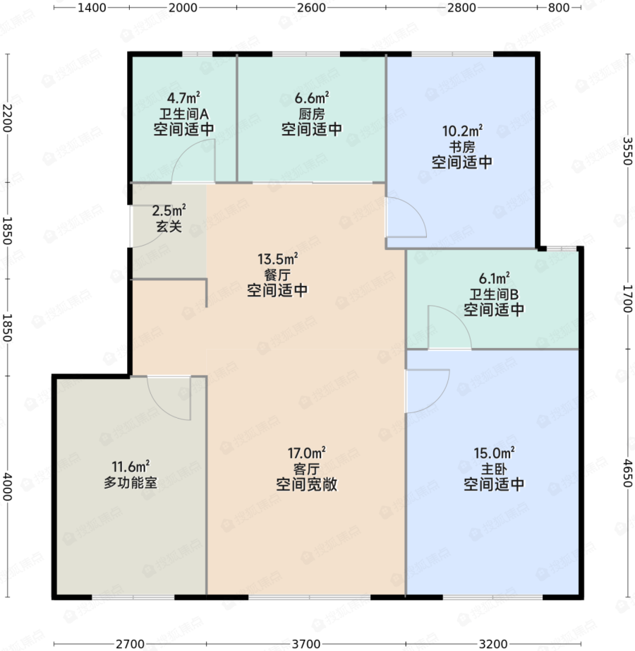 E1户型-3室2厅2卫-98.0㎡
