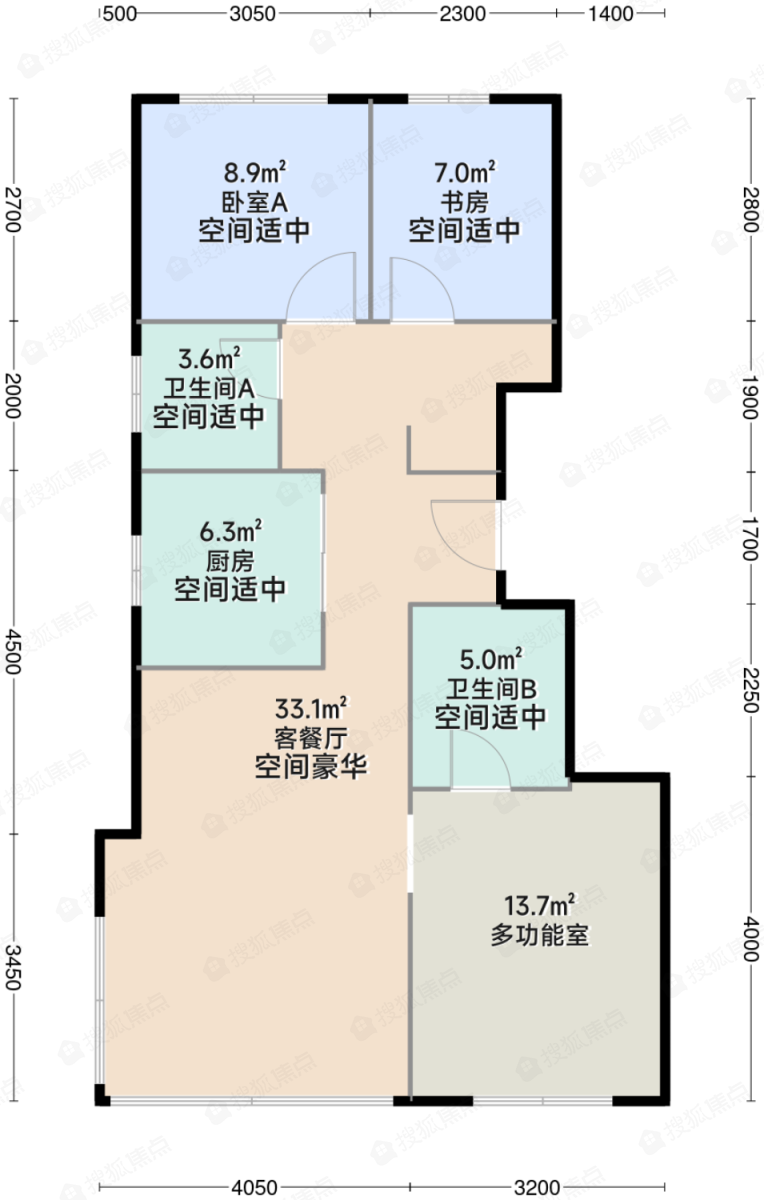 D户型-3室2厅2卫-88.0㎡