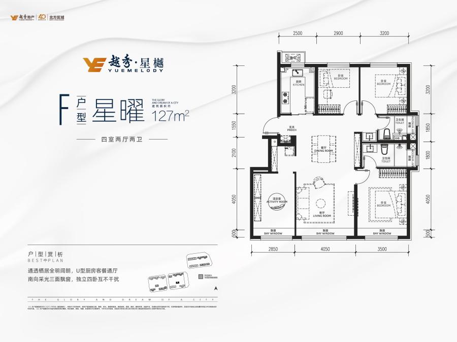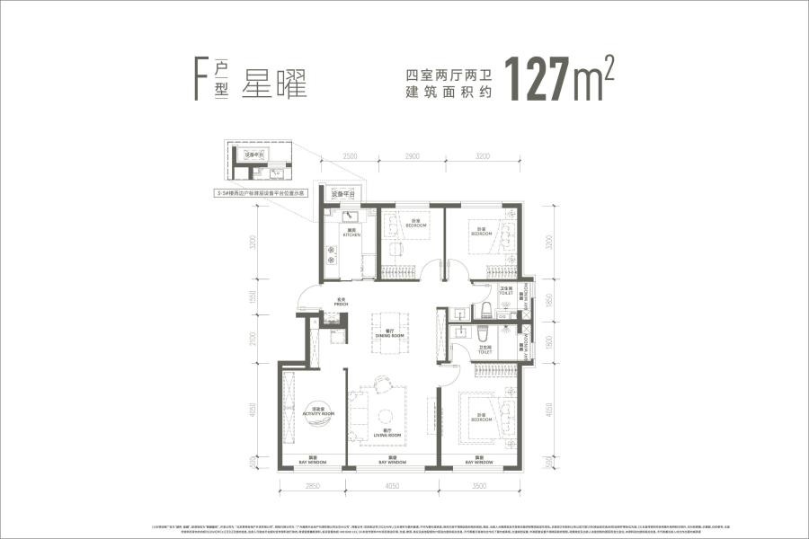 F:建面约127平米四居-4室2厅2卫-127.0㎡