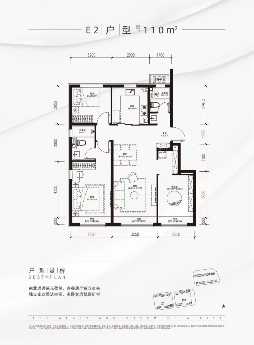 E2:建面约108平米三居(端户)-3室2厅2卫-108.0㎡