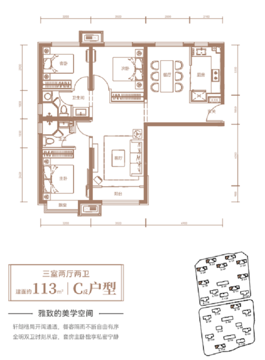 C反-3室2厅2卫-113.0㎡