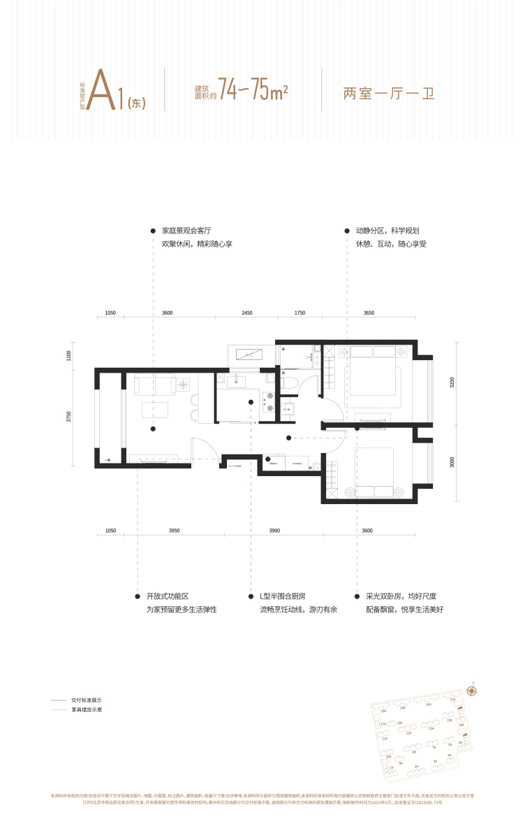 A1(东) 户型-2室1厅1卫-74.0㎡