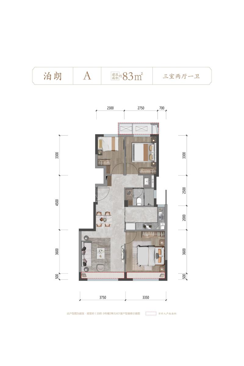 泊朗A户型-3室2厅1卫-83.0㎡
