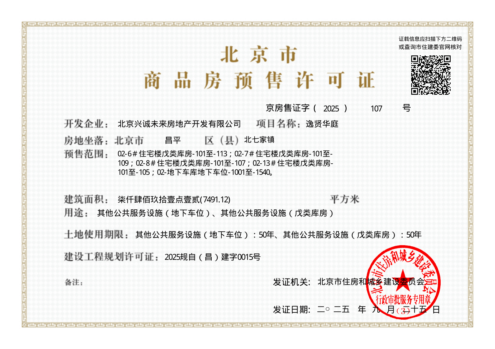 京房售证字(2023)122号 查看图片 | 2023-11-09 | 03-1#住宅楼1层至8层全部住宅;03-2#住宅楼1层至8层全部住宅;03-3#住宅楼1层至8层全部住宅;03-4#住宅楼1层至8层全部住宅;03-5#住宅楼1层至7层全部住宅;03-6#住宅楼1层至7层全部住宅;03-7#住宅楼1层至8层全部住宅;03-8#住宅楼1层至7层全部住宅;03-9#住宅楼1层至7层全部住宅;03-10#住宅楼1层至8层全部住宅;03-11#住宅楼1层至8层全部住宅;03-12#住宅楼1层至7层全部住宅;03-13#住宅楼1层至7层全部住宅;03-14#住宅楼1层至8层全部住宅;03-15#住宅楼1层至8层全部住宅;03-16#住宅楼1层至7层全部住宅;03-17#住宅楼1层至6层全部住宅;03-18#住宅楼1层至7层全部住宅;11-1#住宅楼1层至8层全部住宅;11-2#住宅楼1层至8层全部住宅;11-3#住宅楼1层至7层全部住宅;11-4#住宅楼1层至8层全部住宅;11-5#住宅楼1层至6层全部住宅;11-6#住宅楼1层至8层全部住宅;11-7#住宅楼1层至7层全部住宅; |