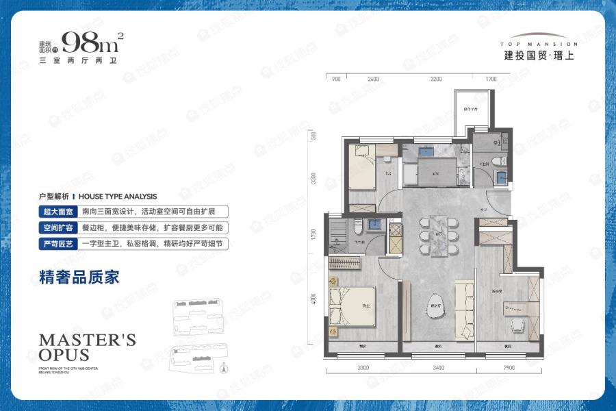 98㎡-3室2厅2卫-98.0㎡