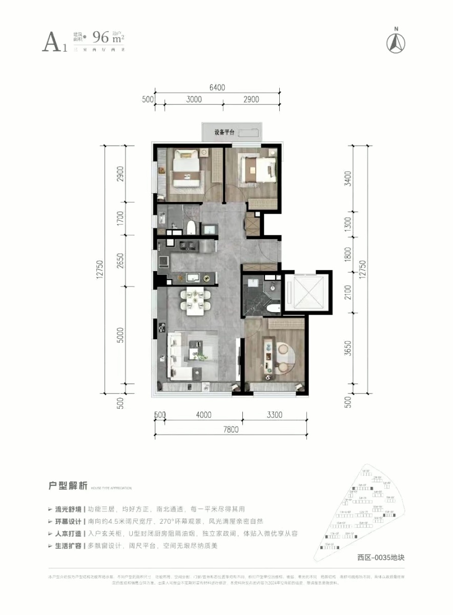 A1户型96㎡-3室2厅2卫-96.0㎡